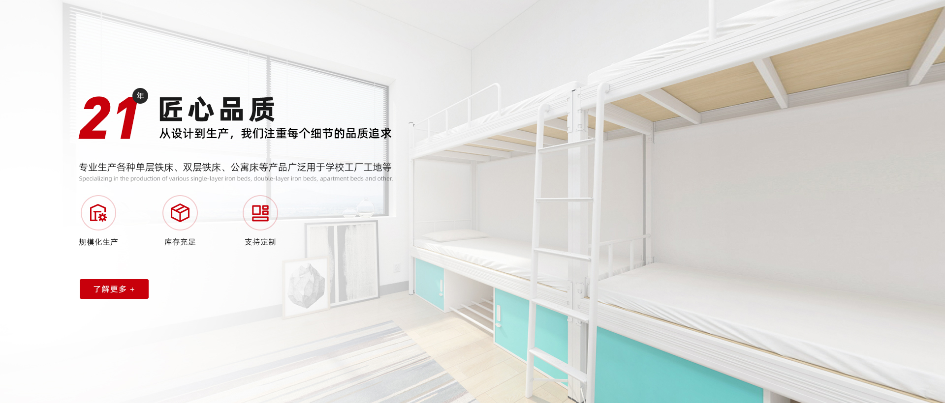 冠迪五金-看得見的鐵床生產實力 現代化生產制造企業,為超過1000企業單位提供公寓宿舍鐵床鐵柜整體解決方案